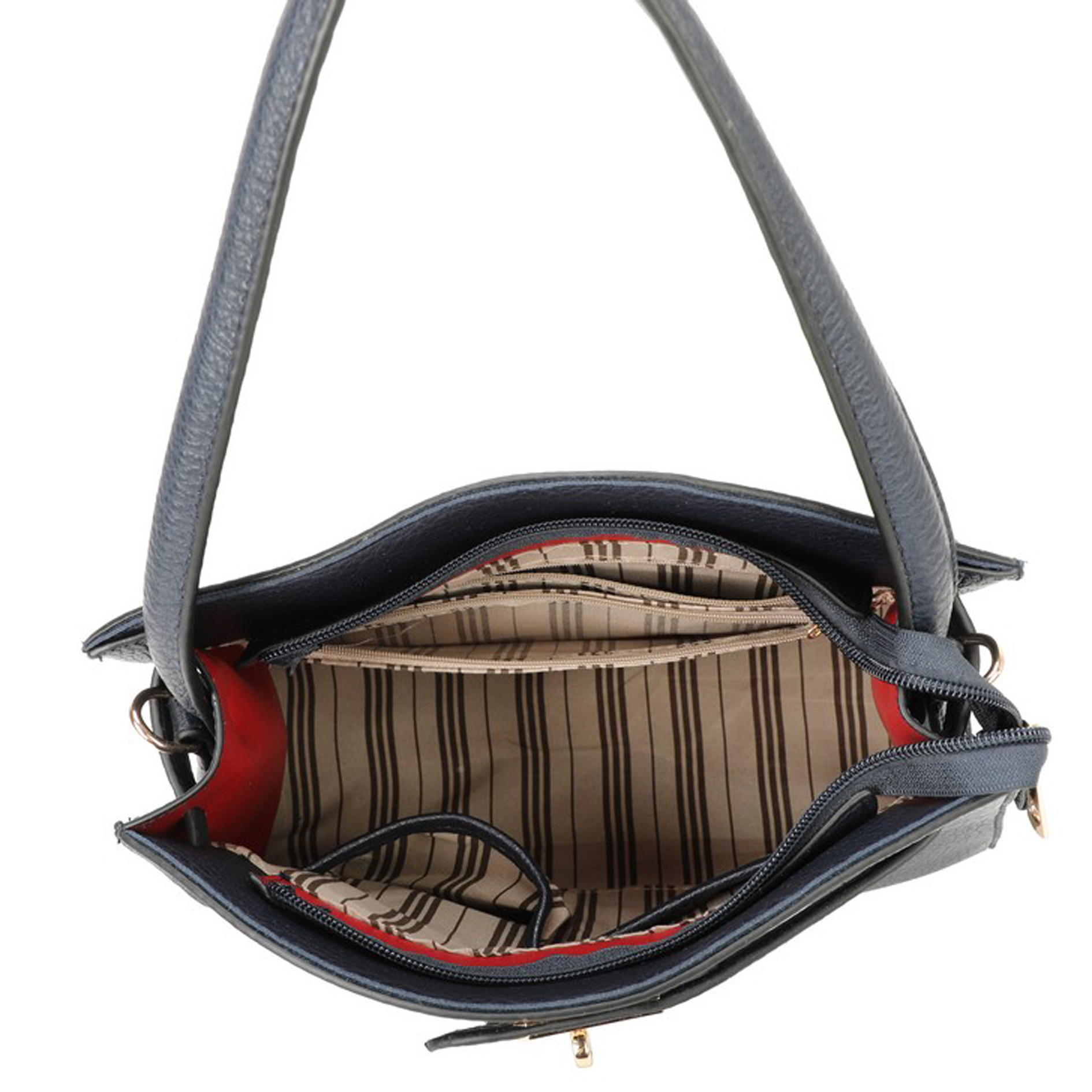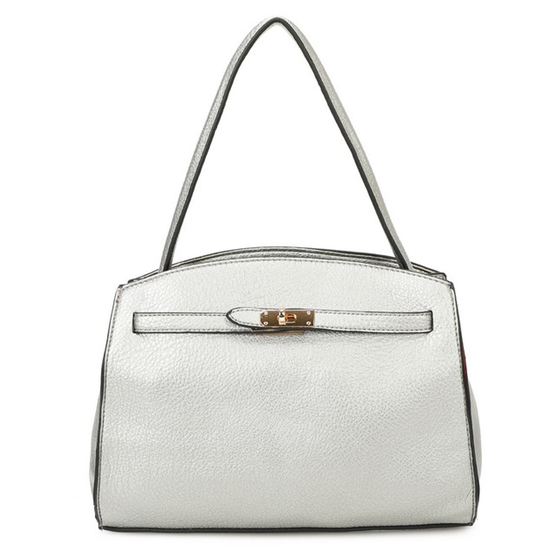 Τσάντα Δερματίνη μεσαίο μέγεθος χειρός και ώμου με μεταλλικό χρυσό κούμπωμα μπροστά και πίσω εξωτερική τσέπη με φερμουάρ . Διαθέτει αποσπώμενο λουρί για χιαστί και θέσεις εσωτερικά με φερμουάρ . Διάσταση:Πλάτος 32 Χ Ύψος 25 Χ Πάτος 11.5