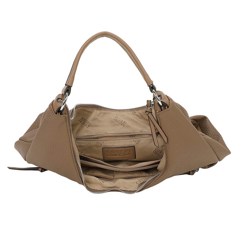 Τσάντα Δερματίνη μεγάλο μέγεθος coveri ώμου με διακοσμητική αγκράφα στο κούμπωμα και δύο πλαϊνά θηκάκια. Διαθέτει λουρί που αυξομειώνεται για χιαστί και θέσεις με χώρισμα εσωτερικά με φερμουάρ.Διάσταση:Πλάτος 39 Χ Ύψος 41 Χ Πάτος 12