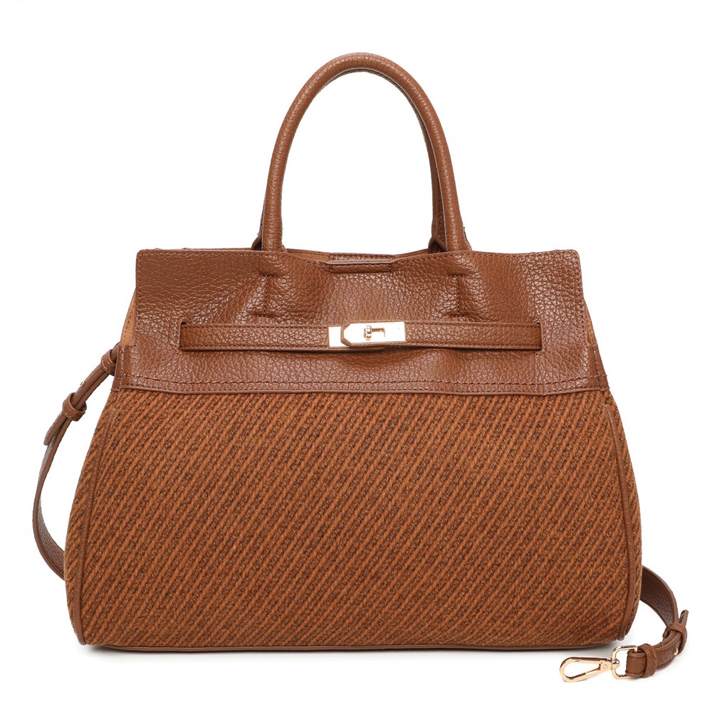 Τσάντα Δερματίνη ώμου και καρπού με συνδιασμό υφάσματος . Διαθέτει λουρί που αυξομειώνεται για χιαστί . Διάσταση:Πλάτος 41 Χ Ύψος 29 Χ Πάτος 16