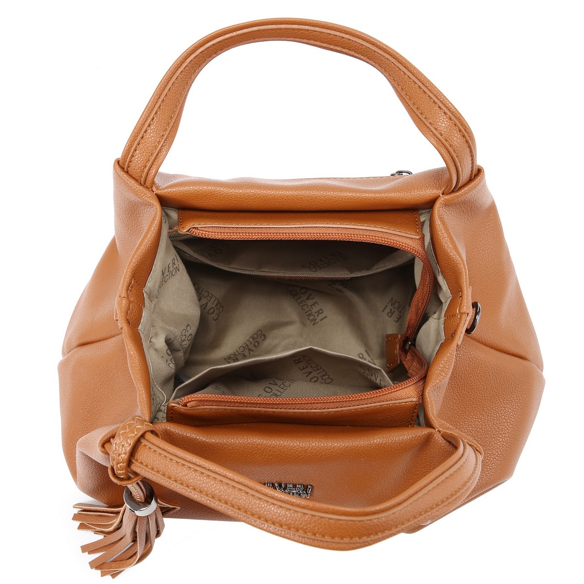 Τσάντα Δερματίνη Coveri μεσαία με τέσσερις πιέτες και διακοσμητική φούντα. Διαθέτει τσέπες εσωτερικά και εξωτερικά στην πίσω τσέπη. Διαθέτει λουρί που αυξομειώνεται για χιαστί. Διάσταση: Πλάτος 32 Χ Ύψος 22 Χ Πάτος 14