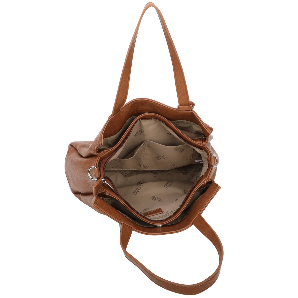 Τσάντα Δερματίνη Coveri ώμου με δύο κρεμαστά λουλούδια έχει δύο χέρια και τρείς θέσεις εσωτερικά . Διαθέτει τσέπες εσωτερικά και εξωτερικά στην πίσω πλευρά .Διαθέτει λουρί που αυξομειώνεται για χιαστί. Διάσταση: Πλάτος 38 Χ Ύψος 34 Χ Πάτος 10