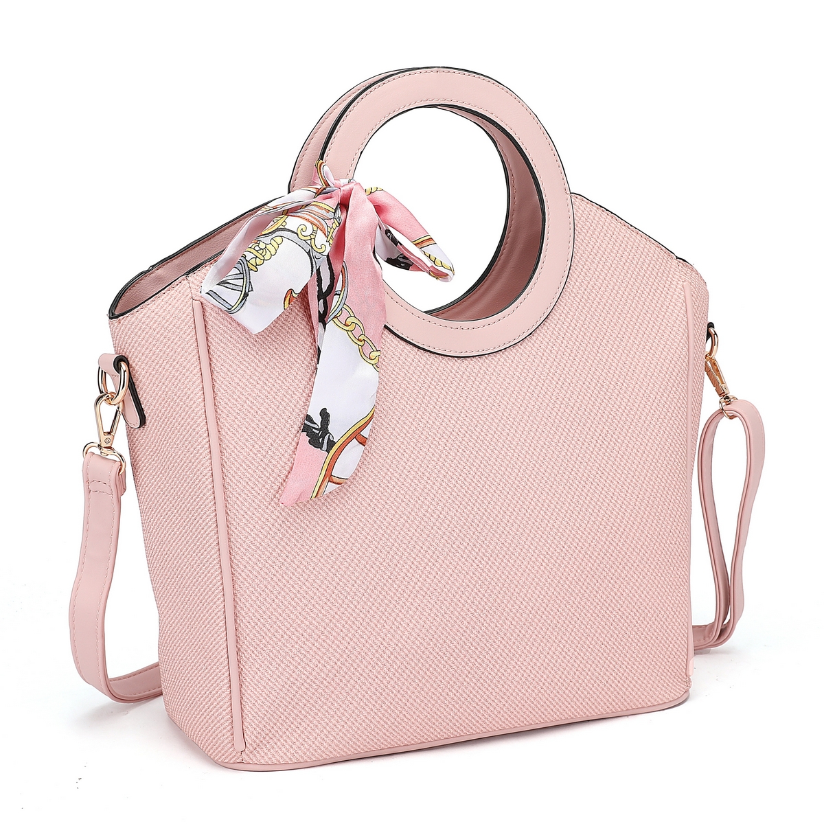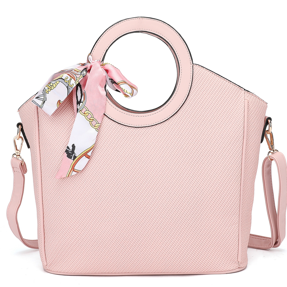 Γυναικεία Τσάντα μεγάλη ορθογώνια με δύο χέρια κύκλους και διακοσμητικό μαντήλι. Διαθέτει επιπλέον λουρί για χρήση και ως χιαστί .Διαστάσεις: Πλάτος 30 εκ. × Ύψος 25 εκ. × Πάτος 13.5 εκ.