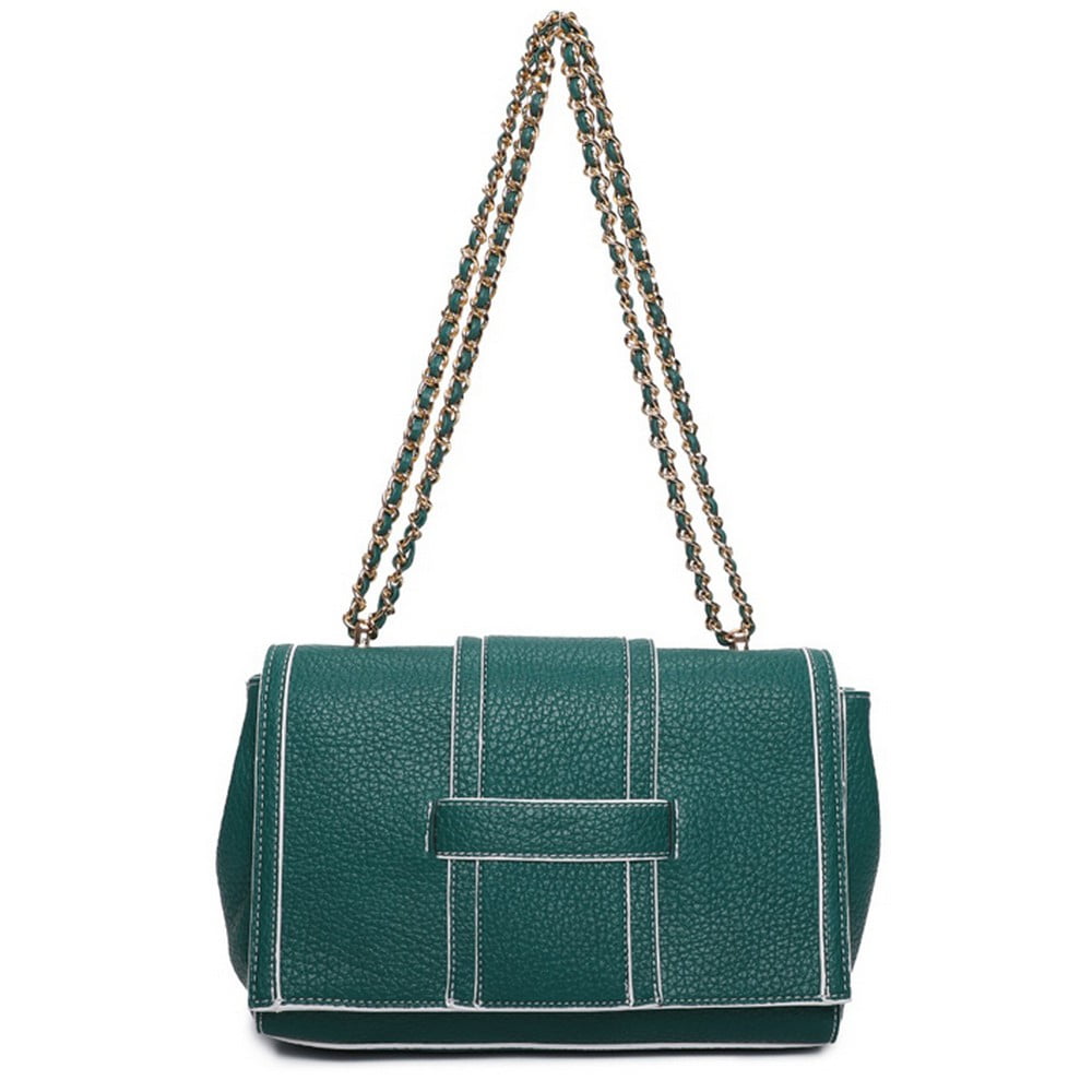 Tσάντα Δερματίνη ώμου και χιαστί με καπάκι και λευκά γαζιά . Διαθέτει θέσεις εσωτερικά και λουρί με αλυσίδα που αυξομειώνεται. Διάσταση: Πλάτος 28 Χ Ύψος 21 Χ Πάτος 13