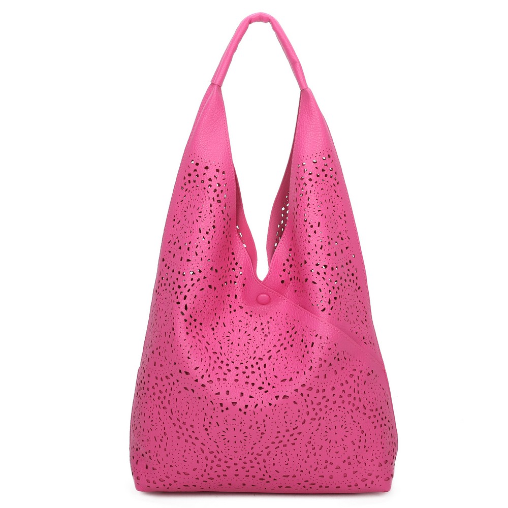 Τσάντα Δερματίνη ώμου γόνδολα με διάτρητο μοτίβο . Διαθέτει αποσπώμενο τσαντάκι - νεσεσέρ εσωτερικά και λουρί που αυξομειώνεται . Διάσταση: Πλάτος 41 Χ Ύψος 35 Χ Πάτος 13
