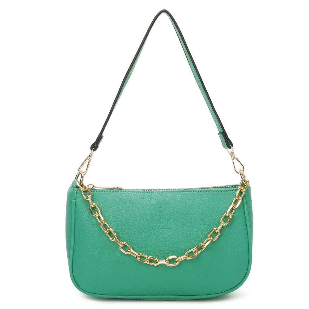 Τσάντα Δερματίνη ώμου και χιαστί με αποσπώμενη αλυσίδα διακοσμητική και λουρί που αυξομειώνεται για χιαστί . Διαθέτει εξωτερική τσέπη πίσω με φερμουάρ και θέσεις εσωτερικά . Διάσταση: Πλάτος 25 Χ Ύψος 15 Χ Πάτος 7