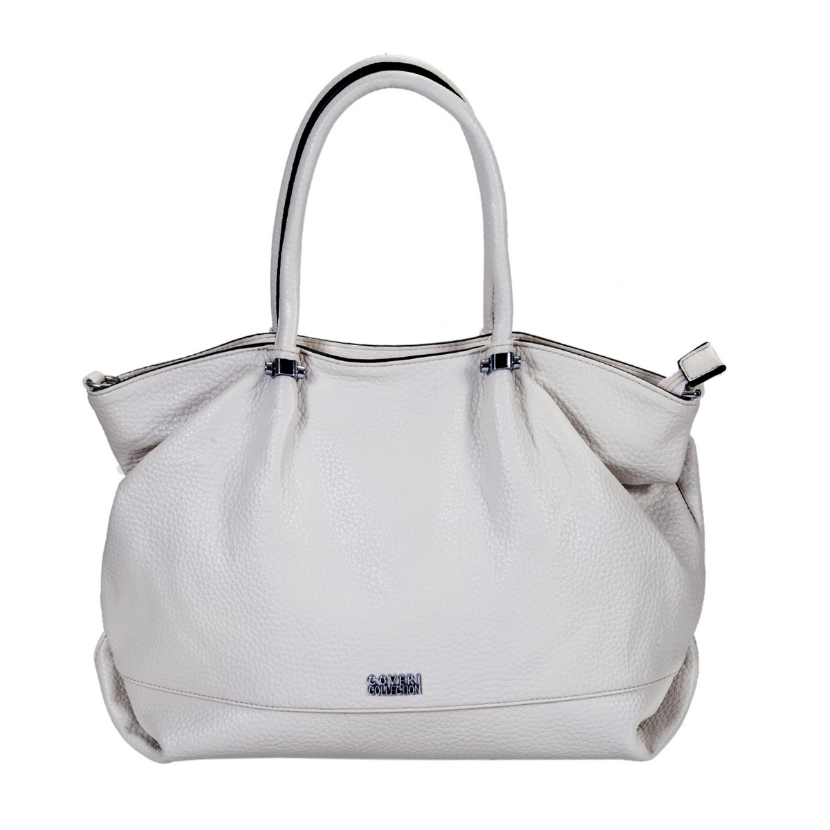 Τσάντα Δερματίνη μεγάλο μέγεθος Coveri ώμου με δύο λουριά και μεταλλικές λεπτομέρειες . Διαθέτει λουρί που αυξομειώνεται για χιαστί και πίσω εξωτερική τσέπη. Διάσταση: Πλάτος 48 Χ Ύψος 30 Χ Πάτος 12