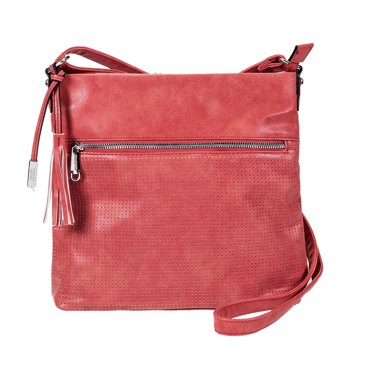 Τσάντα Δερματίνη Χιαστί με διάτρητη επιφάνεια στο κάτω μέρος και εξωτερικά φερμουάρ μπροστά και πίσω . Διάσταση: Πλάτος 27 Χ Ύψος 26 Χ Πάτος 6